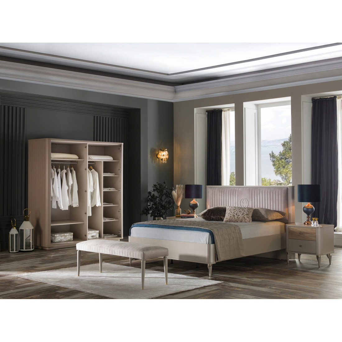 Четырехдверный шкаф Санвито SANV-20 один из вариантов шкафов, представленных турецким брендом Bellona в коллекции SANVITO. Благодаря своей длине 1810 мм, он отлично впишется в небольшую спальню. Наполнение же шкафа ,при глубине 660мм, позволит хранить все необходимые вещи для гардероба. В шкафу предусмотрены как полки для белья, так и штанги для вещей. Максимум хранения при минимальных габаритах. Отдельно стоит уделить внимание дизайну шкафчика. Первое, что обращает на себя внимание это округленная форма шкафа, отсутствиеострых углов. Шкафчик кажется обтекаемым со всех сторон. Вертикальные рифленые полосы на фасадах наоборот создают эффект увеличения высоты. .Центральные зеркальные фасады отлично комбинируются с теплыми кремовыми тонами боковых фасадов.