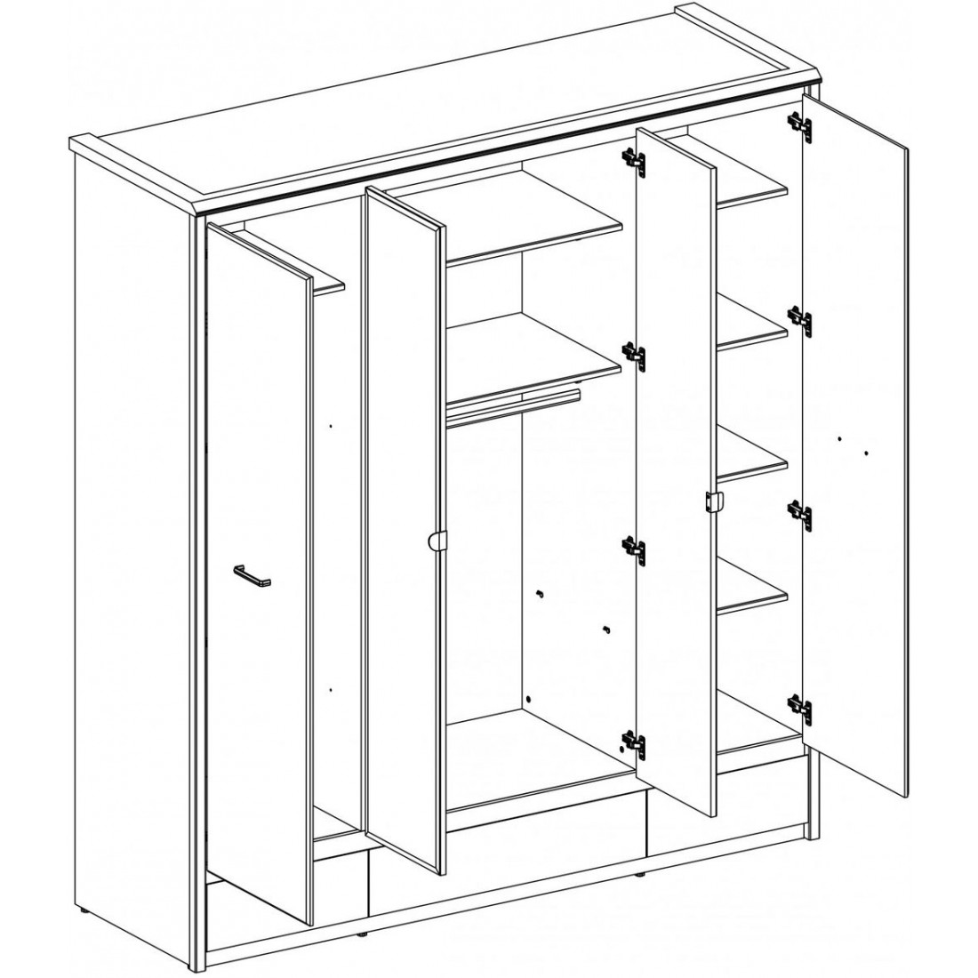 Четырехстворчатый шкаф для одежды с зеркалом Бьёрк 4DG3S Z — предмет современной коллекции в стиле Loft, где все элементы мебели выполнены в декорах ольха полярная и оникс с использованием уникальной структуры плиты.