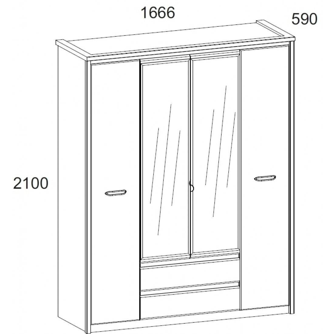 Четырехстворчатый шкаф для одежды с зеркалом Jazz 4DG2S Z — это надежность, функциональность и высокое качество. Выдержанный современный стиль и благородное сочетание двух цветовых гамм создадут приятную обстановку в Вашем доме.