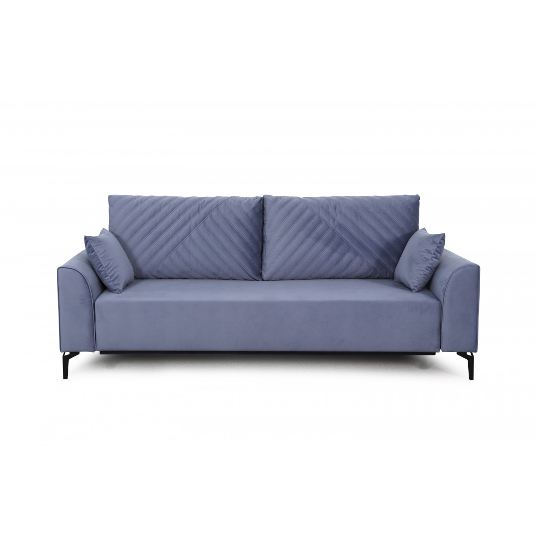 Плавные линии подлокотников позволяют удобно расположиться во время отдыха. Диван стоит на высоких металлических опорах, что позволяет использовать робот-пылесос в процессе уборки. Удобный и долговечный механизм трансформации "Тик-так" обеспечивает легкое раскладывание дивана.