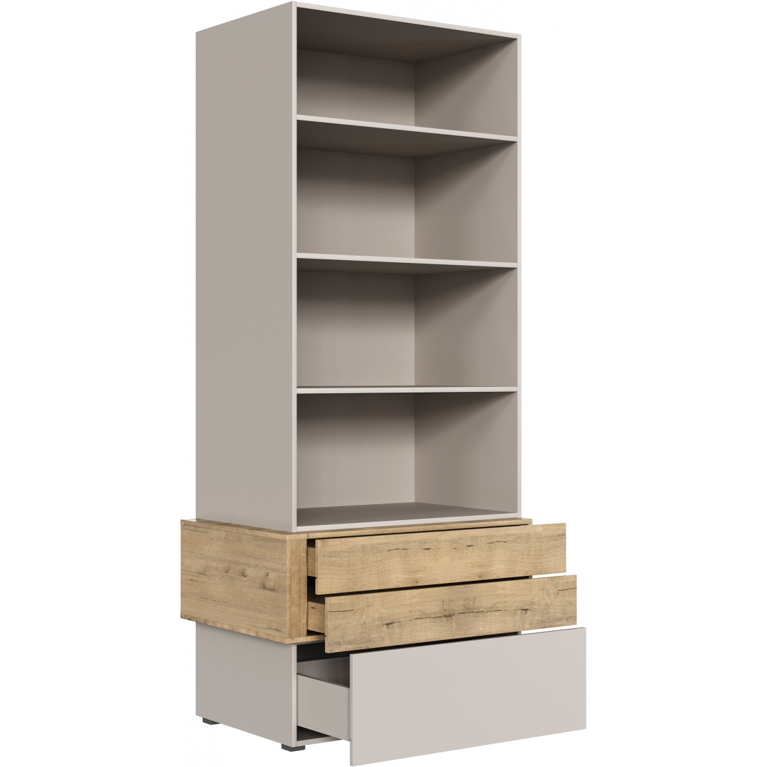 • Шкаф двухстворчатый, укомплектованный полкой, штангой и 3-мя выдвижными ящиками;