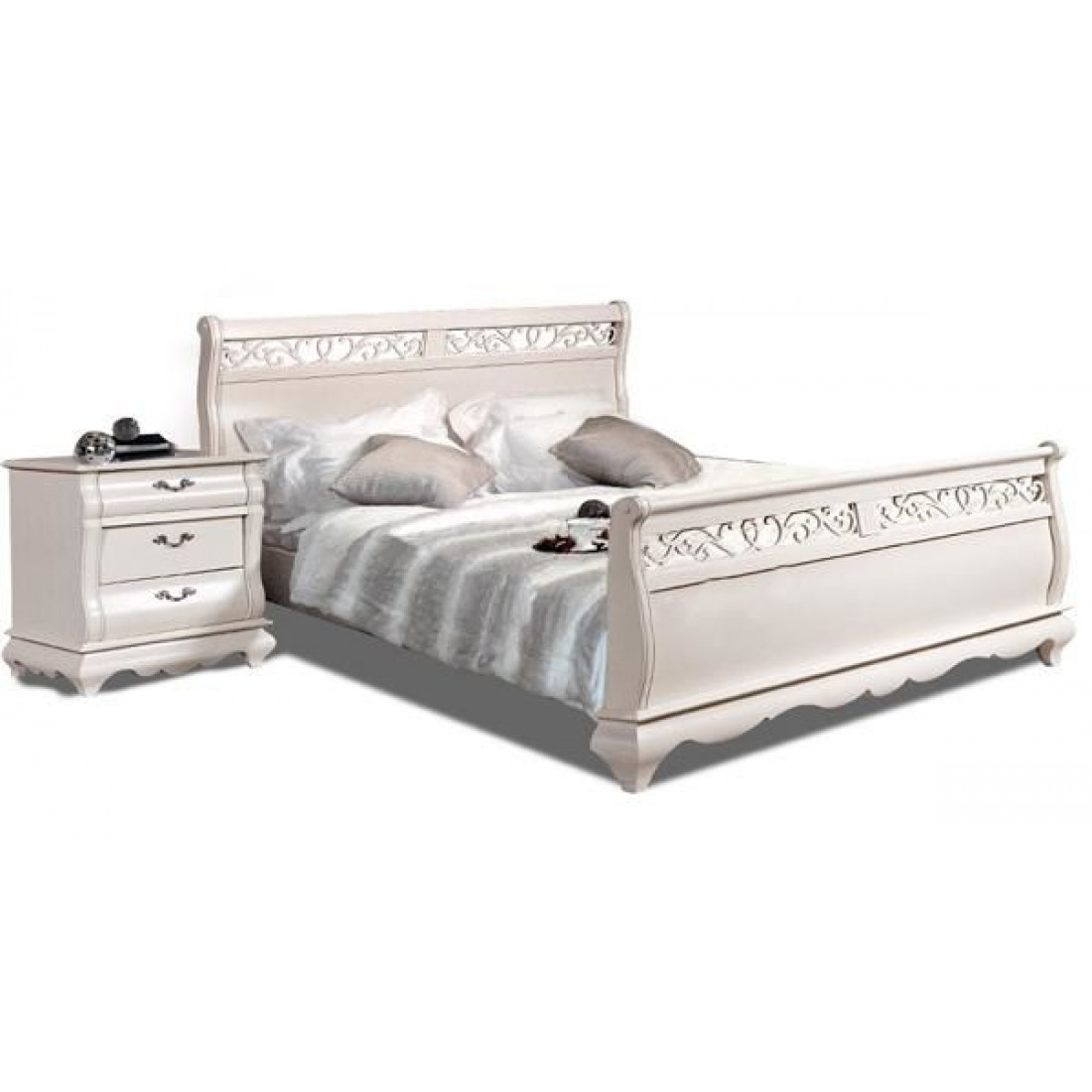 Классическая двуспальная кровать с высокими резными спинками из коллекции мебели для спальни "Оскар". Дизайн модели отличается выгнутой формой спинок и изящной ажурной резьбой с растительным мотивом. Спальное место 1600х2000 . Выполнена из массива и шпона дуба, окрашена в оттенок "Белая эмаль с патиной".