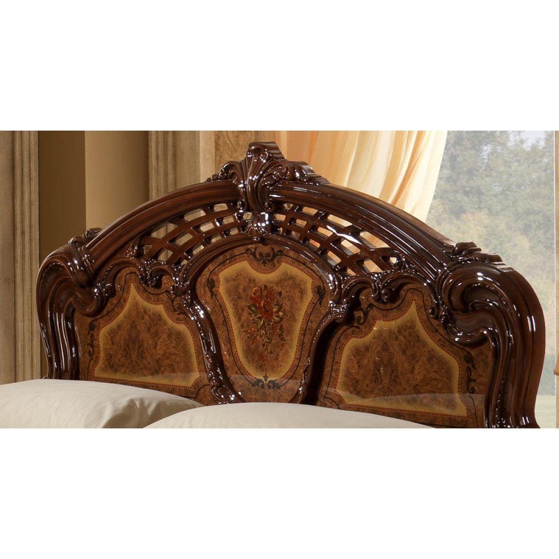 Двуспальная кровать Роза (орех) от Российской фабрики "ДИА мебель". Выполнена в элегантном классическом стиле. Такая большая и комфортная кровать с ортопедическим основанием, поможет Вам расслабиться и насладиться хорошим отдыхом после рабочего дня. Она выполнена в ореховом цвете с глянцевым покрытием, и золотистым орнаментом на фасадах. Обращает внимание на себя декоративная фрезеровка изголовья кровати. Такая модель кровати, с легкостью обратит внимание на прекрасное чувство стиля своего владельца.