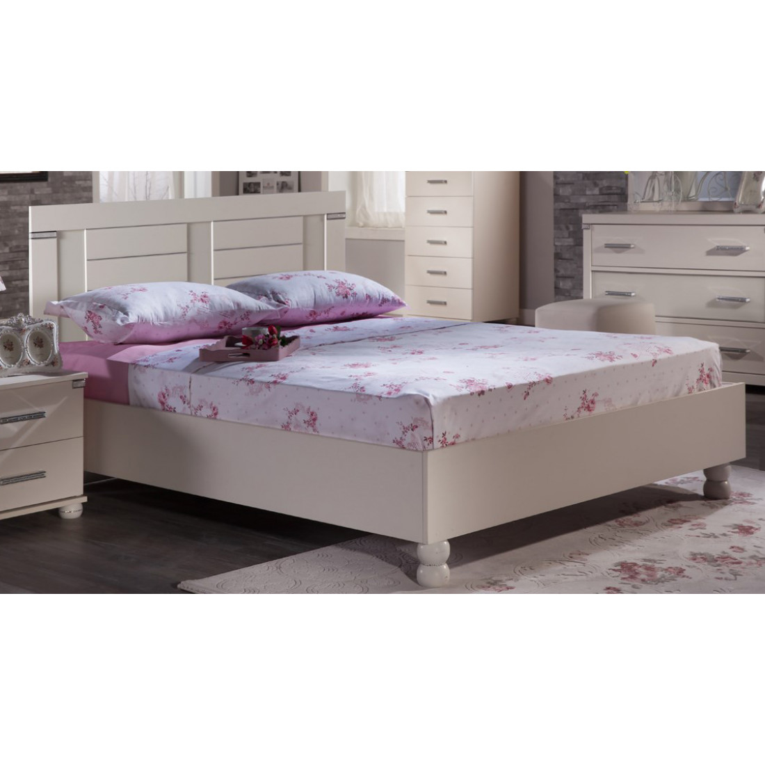 Цветовое исполнение кровати - белая, но он есть также и в других цветах - венге и орех.