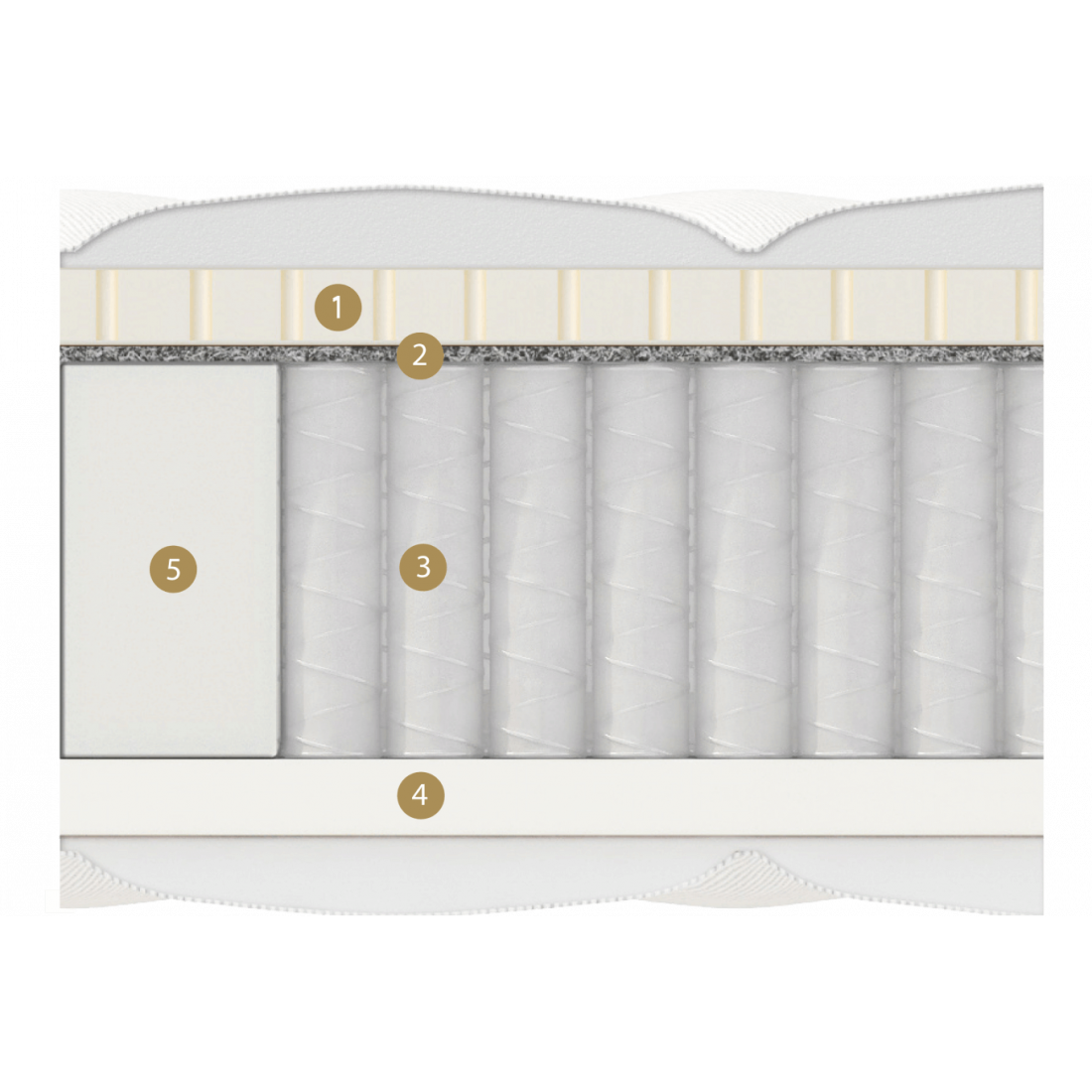 Первая сторона обладает средней жесткостью. Натуральный латекс и термофиксированный фетр в её составе прекрасно пропускает воздух, благодаря этому достигается оптимальная температура спального места. Латекс мягкий, но упругий материал идеально подстраивается под контуры тела и создает поддерживающий и одновременно расслабляющий эффект для мышц и суставов.