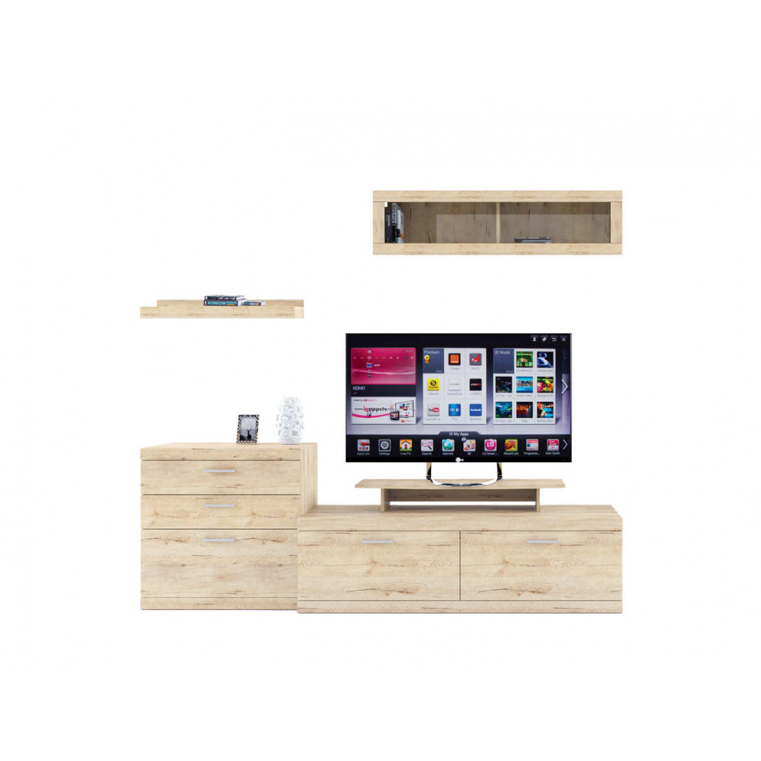 2. 4 варианта тумб RTV с выдвижными ящиками на шариковых направляющих. 2 размера надставных полок для RTV-тумб (полка TVB и полка TV), позволяющих установить выше телевизор. Варианты навесных полок, соответствующих по размеру тумбам для телевизора. Тумба RTV 2S2NL имеет глубину 351 мм, что позволяет составить модули, имеющие такую же глубину, в одну линию без выступающих элементов.