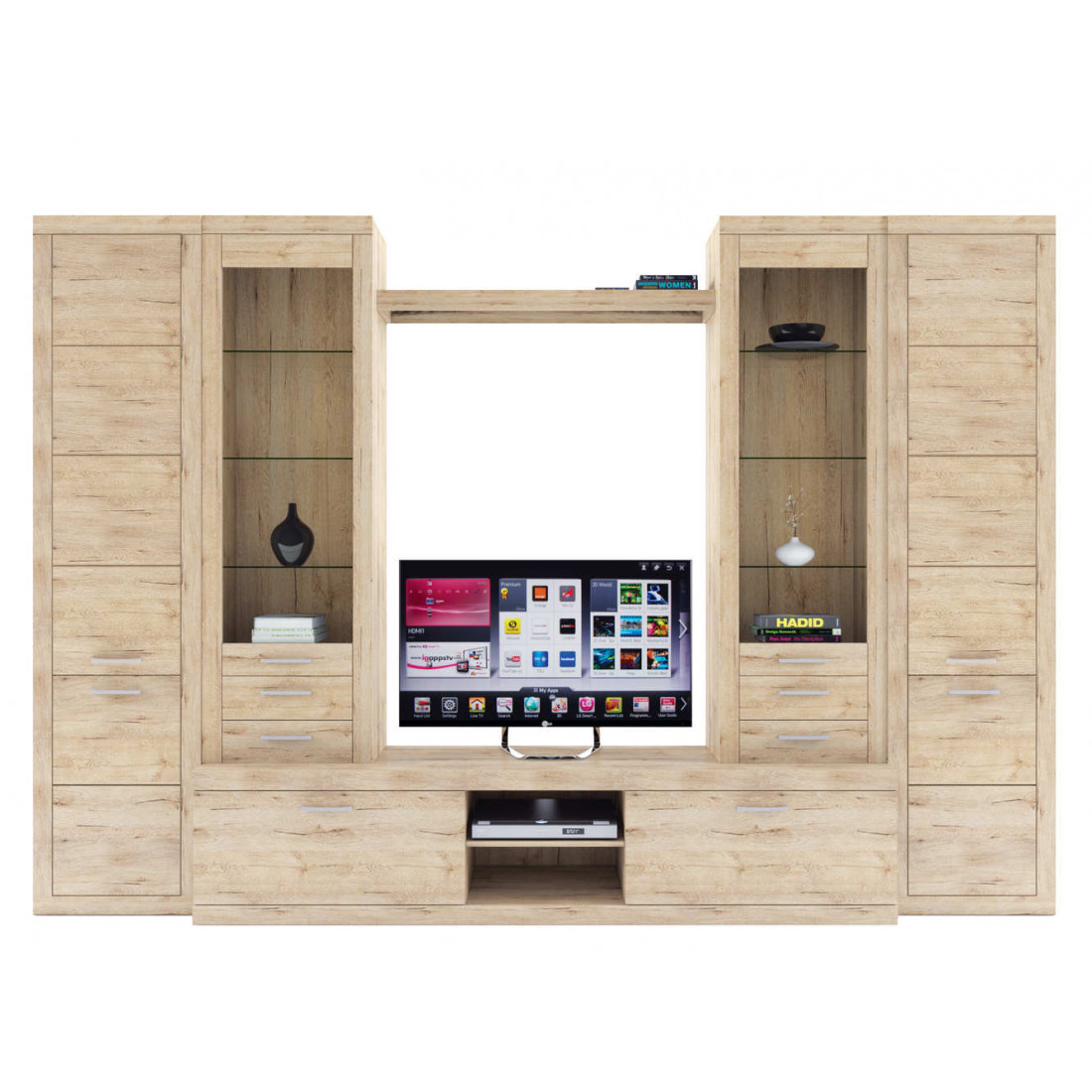 2. 4 варианта тумб RTV с выдвижными ящиками на шариковых направляющих. 2 размера надставных полок для RTV-тумб (полка TVB и полка TV), позволяющих установить выше телевизор. Варианты навесных полок, соответствующих по размеру тумбам для телевизора. Тумба RTV 2S2NL имеет глубину 351 мм, что позволяет составить модули, имеющие такую же глубину, в одну линию без выступающих элементов.