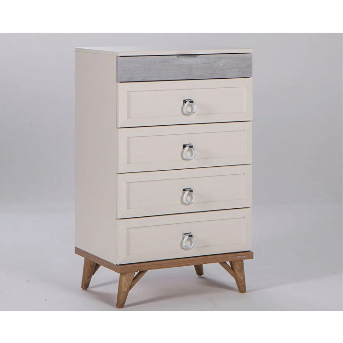 Высокий комод Mavenna Bellona с пятью выдвижными ящиками. Удобный вариант для небольшой спальни. Изготовлен из ЛДСП высокого качества