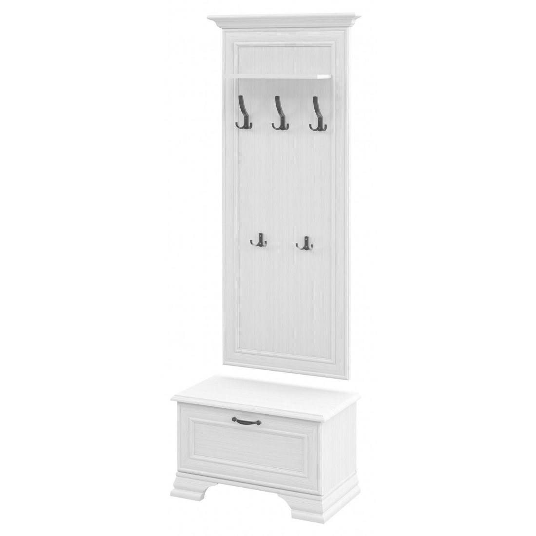 Мебель для прихожей Юнона от фабрики Мебель-Неман композиция 1 - новинка 2019 года в классическом стиле с отделкой структурной фактуры, обрамленная рамочным фасадом, где металлические ручки выгодно подчёркивают стиль и изящество, всегда актуальна и востребована.