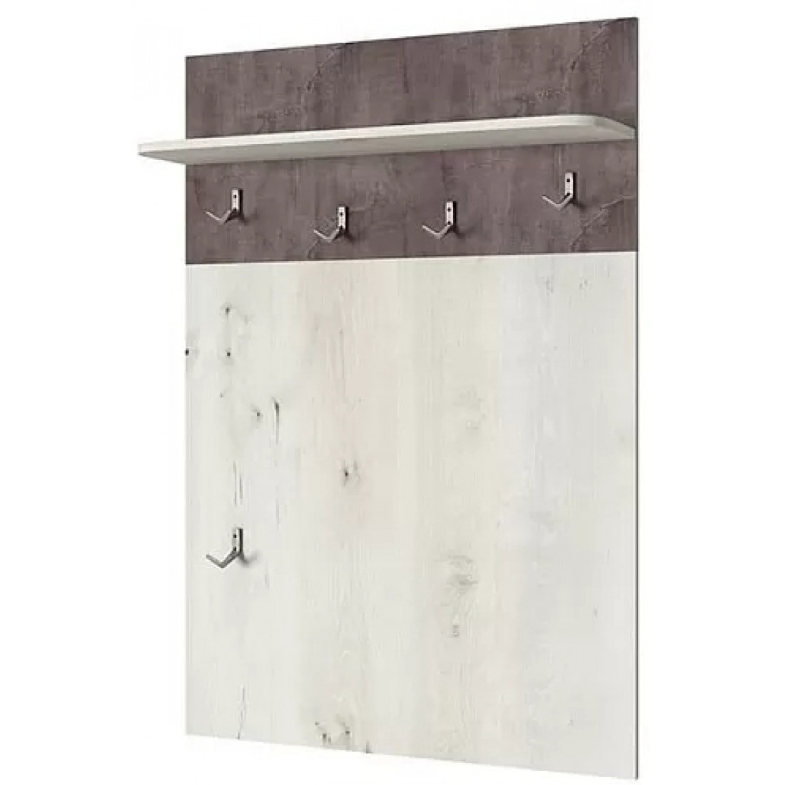 Настенная вешалка для одежды Бьёрк — предмет современной коллекции в стиле Loft, где все элементы мебели выполнены в декорах ольха полярная и оникс с использованием уникальной структуры плиты.