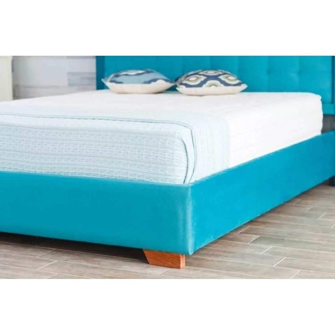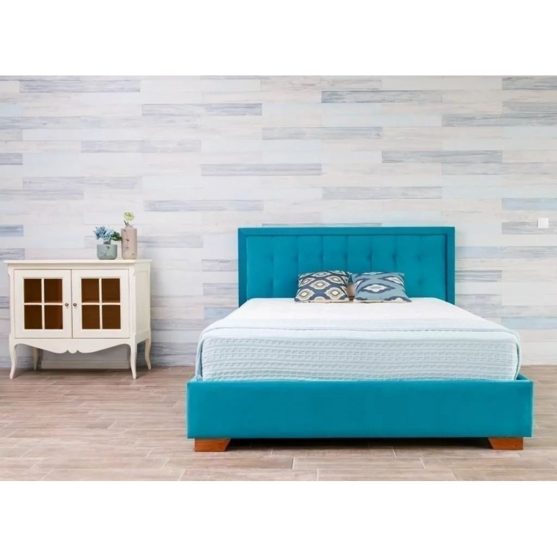 Кровать оснащена встроенным основанием для матраса — прямыми ламелями из березовой фанеры.