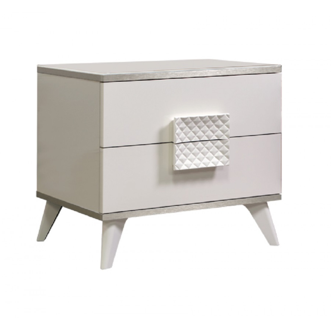 Хорошим технологическим решением стали ножки в тумбочках и комодах спального гарнитура «Diora». Они расположены немного под наклоном к центральной части корпуса, что позволяет добиться хорошей устойчивости в тоже время с точки зрения дизайна это решение не стандартно, так как визуально нарушает гармонию горизонтальных и вертикальных линий, соответственно привлекает к себе больше внимания.