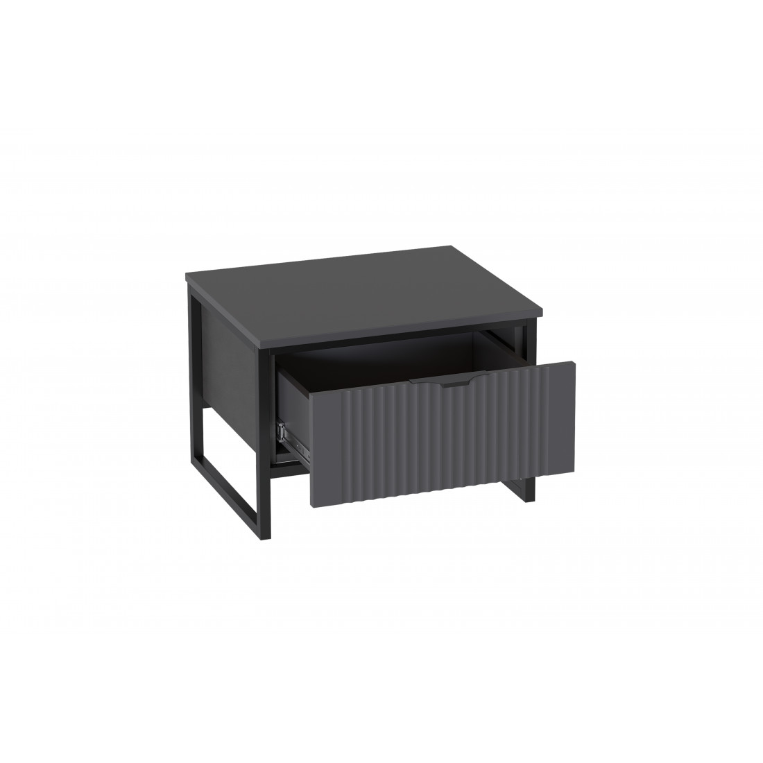 Коллекцию модульной спальни "Нора" отличает современный оригинальный стиль. Декоративная продольная фрезеровка на МДФ фасадах цвета "Графит" и опоры на металлокаркасе цвета "Черная эмаль" соответствуют модным тенденциям этого года в ведущих зарубежных коллекциях.