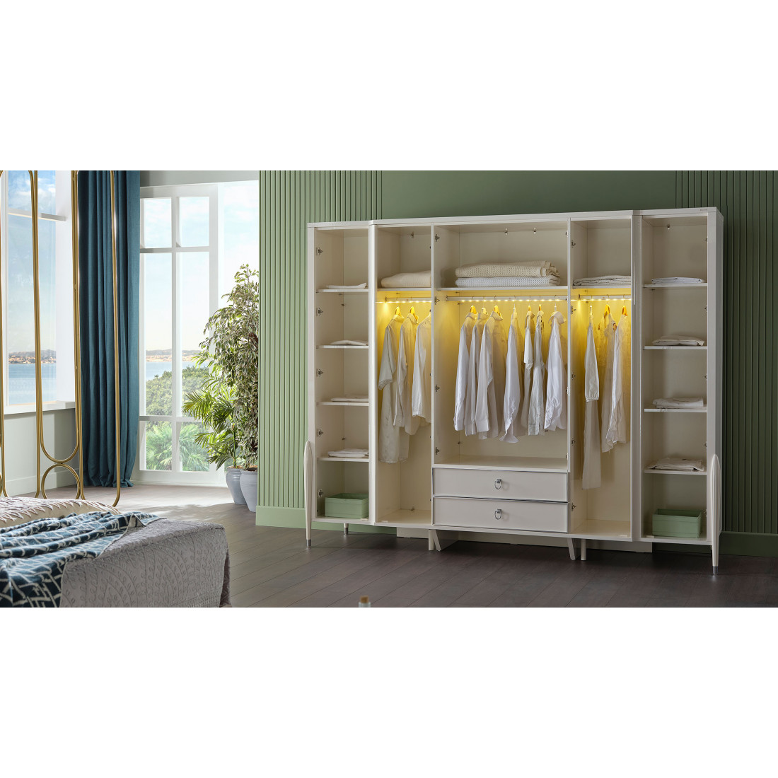Шестистворчатый шкаф Gravita (Гравита) GRAV-34 слоновая кость