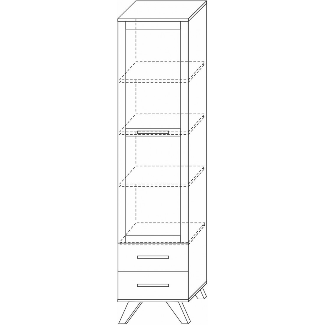 Узкая витрина «Вега Скандинавия» это геометрические формы и сочетание оттенков камня, песка, древесины, белого цвета.