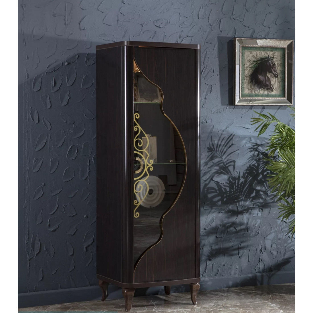 Дизайн шкафа для посуды "Легенда" определенно заслуживает Вашего внимания. Изделие представлено в классическом белом стиле с золотистыми рисунками на стеклянных дверцах и белыми изогнутыми сужающимися к полу ножками. За счет использования высококачественных материалов, удалось добиться долговечности данного изделия.