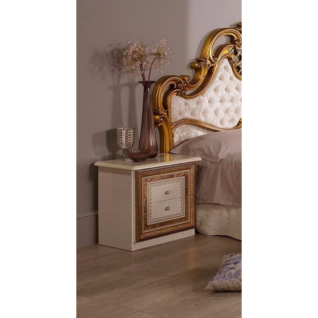 Спальня Анита (беж) от Российской фабрики «ДИА мебель» Выполнена в бежевом цвете с отделкой золотых фасадов. Классический стиль придают интерьеру неповторимую уникальность и роскошь. Изгибающие линии кровати и зеркала придают легкость и воздушность спальне. Коллекция "Анита" придаст вашей спальне экстравагантность и принесет свежие нотки в Ваш дом.