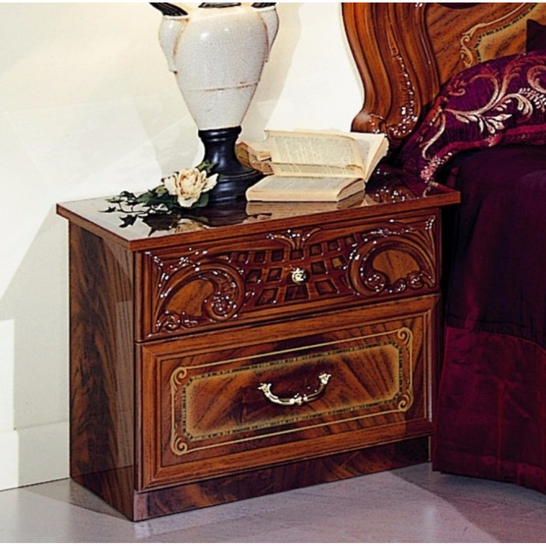Спальня Роза (орех) от Российской фабрики "ДИА мебель". Выполнена в классическом стиле. Такая спальня коллекции Роза порадует Вас своим дизайном и многофункциональностью. Ореховый цвет в сочетании с глянцевым покрытием и орнаментом на фасадах, придает этой модели еще изысканности и подчеркивает прекрасное чувство стиля своего владельца. Поможет насладиться прекрасным вечером после трудного дня.