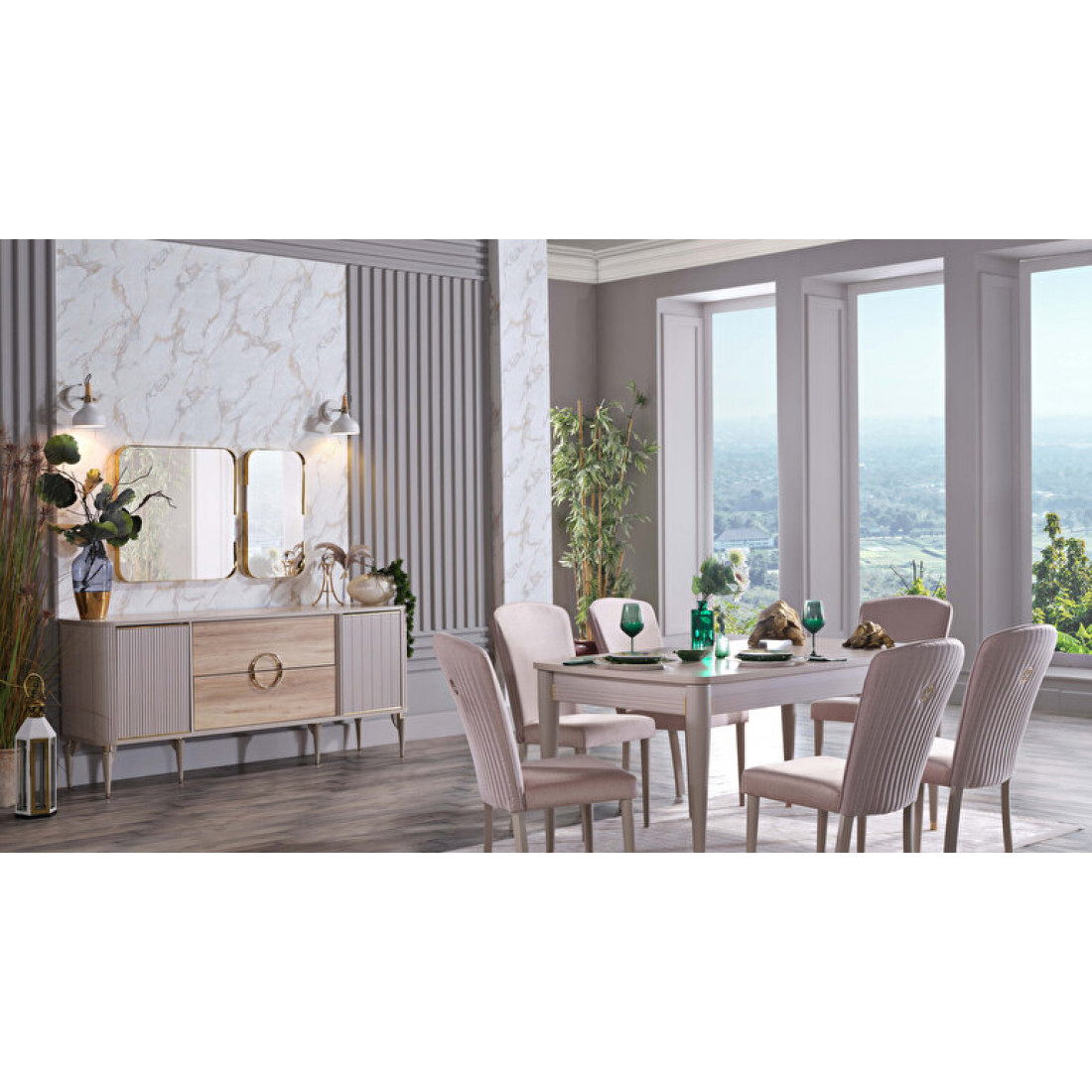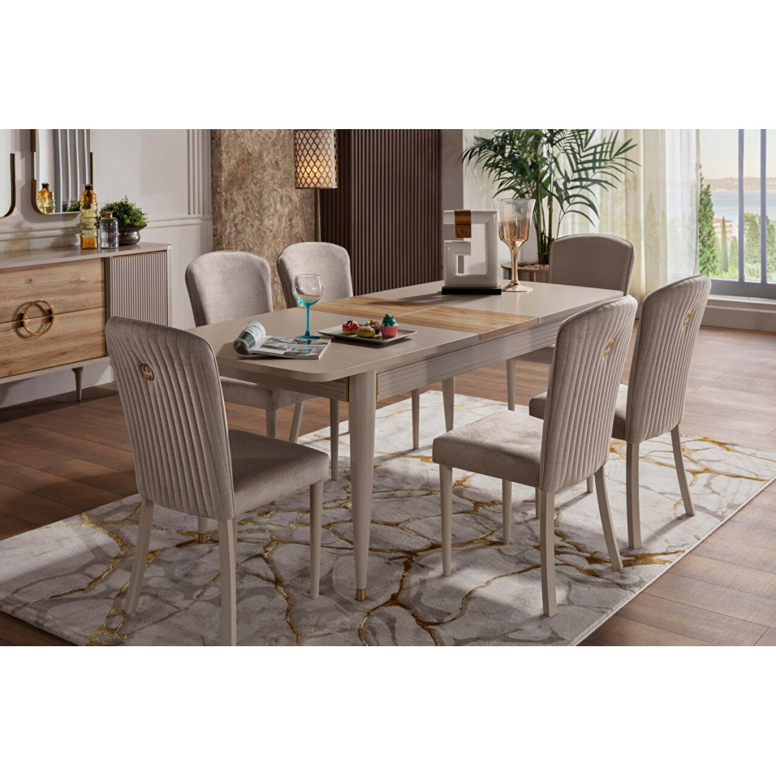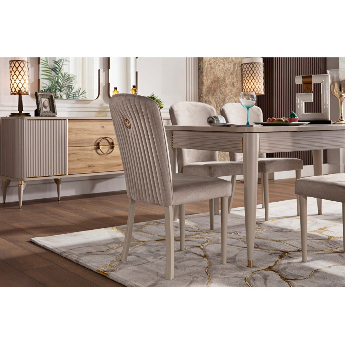 Комплект из двух стульев Sanvito в стилистике всей коллекции. В дизайне присутствуют вертикальные линии, цветовая гамма — кремовая. Стулья имеют мягкое сидение и спинку. Они замечательно сочетаются со столом Sanvito и с другой мебелью данной серии.