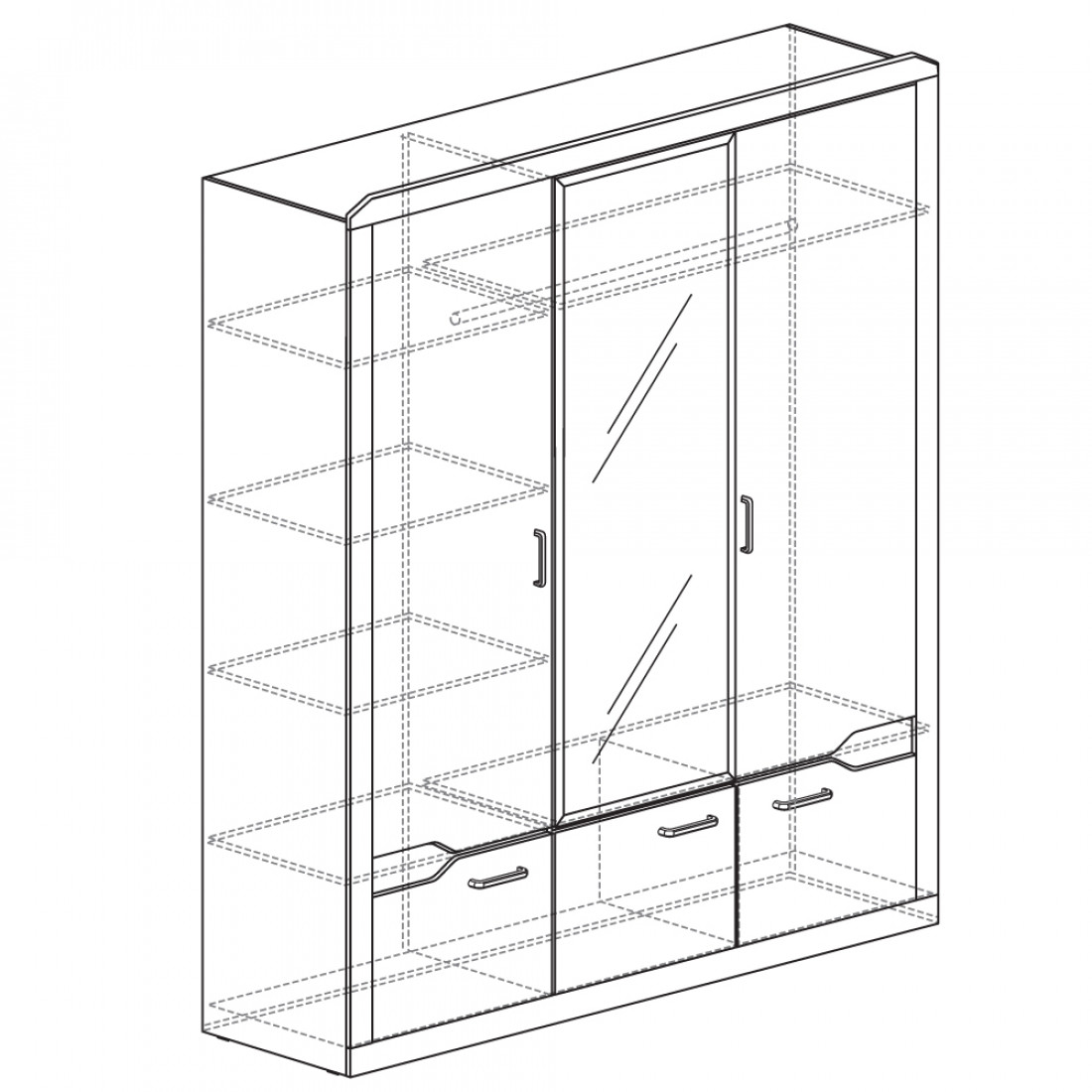 Трехстворчатый шкаф для одежды Верона MUR-102-03 st с зеркалом