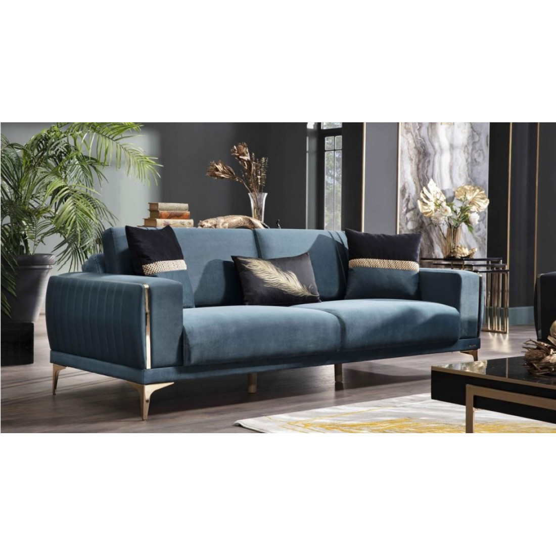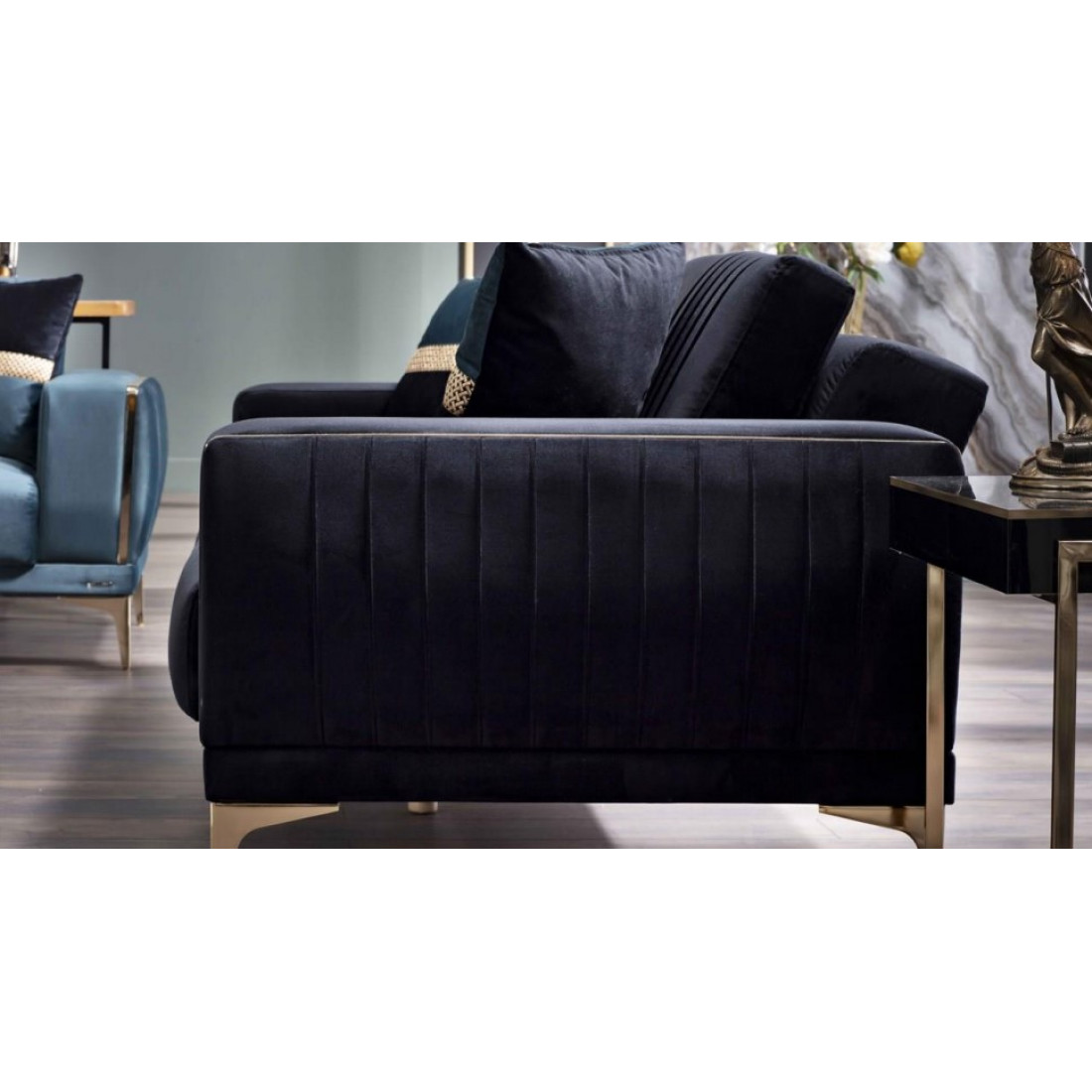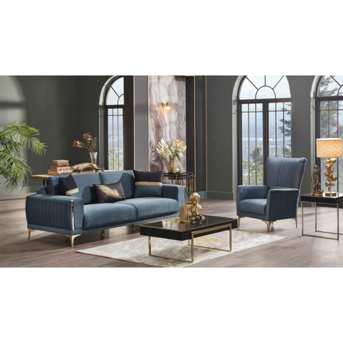 Сочетание синего, напоминающего цвет океана, и золота придётся по душе настоящим ценителям красоты и комфорта