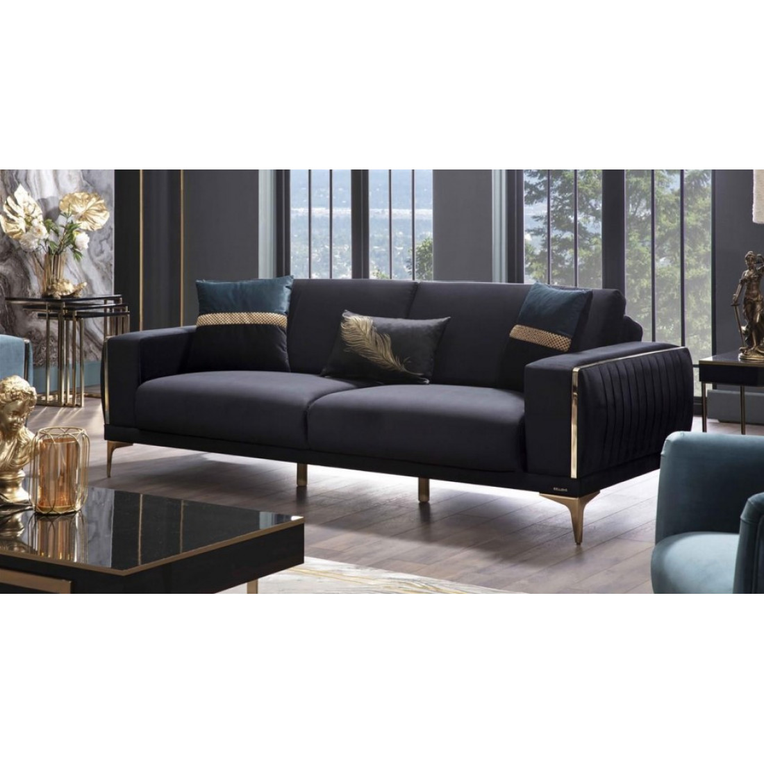 Этот диван не только удобен, благодаря своим мягким подушкам и широким подлокотникам, но и отличается изысканным дизайном.