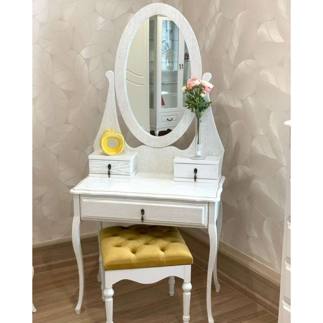 Туалетный столик Аделина MUR-117-06/07 с зеркалом воплощает в себе классические тренды. Сочетание изящных оттенков удачно освежит Ваш интерьер и придаст знакомым формам новое дыхание. Неповторимые легкость и элегантность этой мебели создадут атмосферу тепла и уюта в Вашем доме.