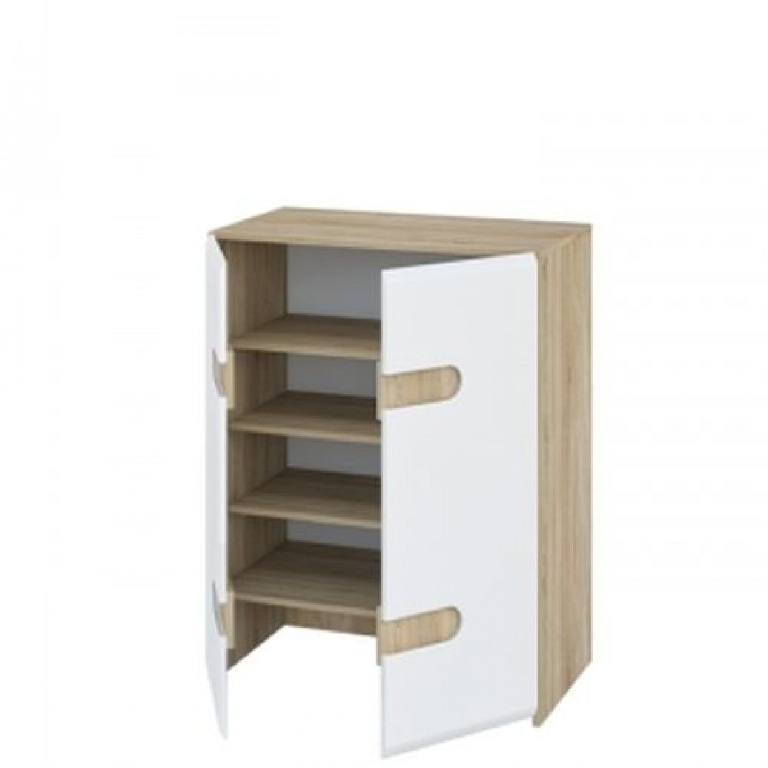Для открытия дверей есть специальные углубления. Внутри 4 полки, на которых будет комфортно вашей обуви.