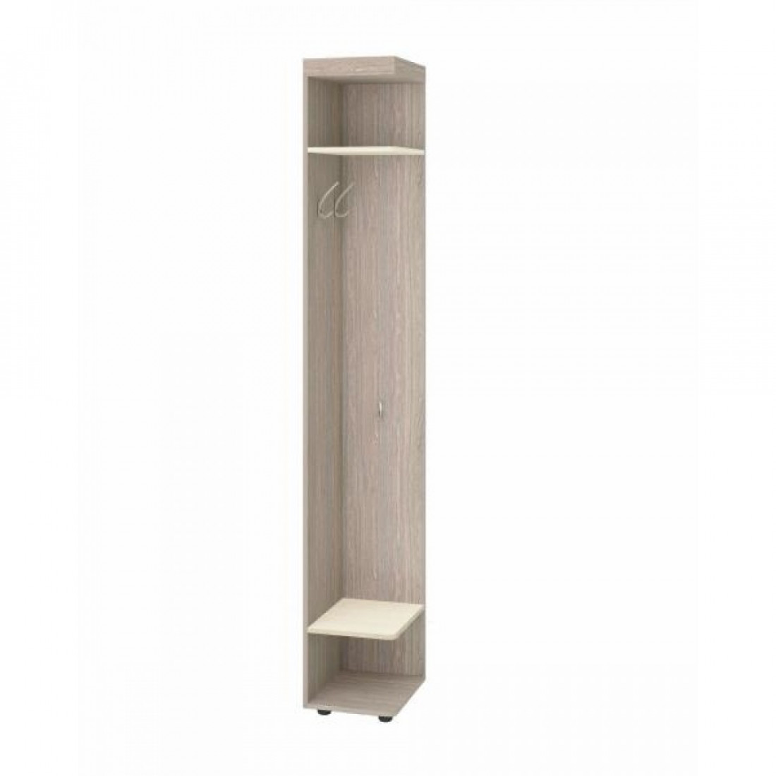 Торцевой стеллаж «Мэри 39.15» — элемент модульной программы прихожей «Мэри». Ножки регулируются по высоте, что позволяет скорректировать неровности пола. Модуль является универсальным и может быть установлен как с левого, так и с правого торца прихожей.